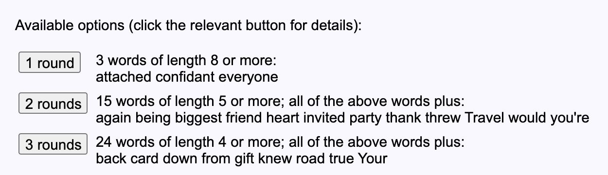 When it says “rounds” it’s talking about how many rounds of letter guesses will be required.