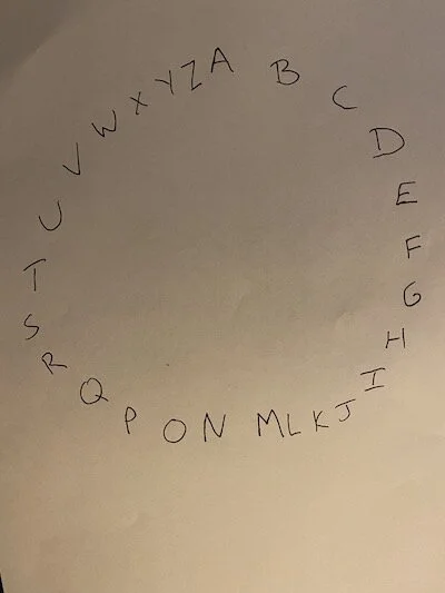 I showed her a piece of paper with the letters of the alphabet written in a circle.